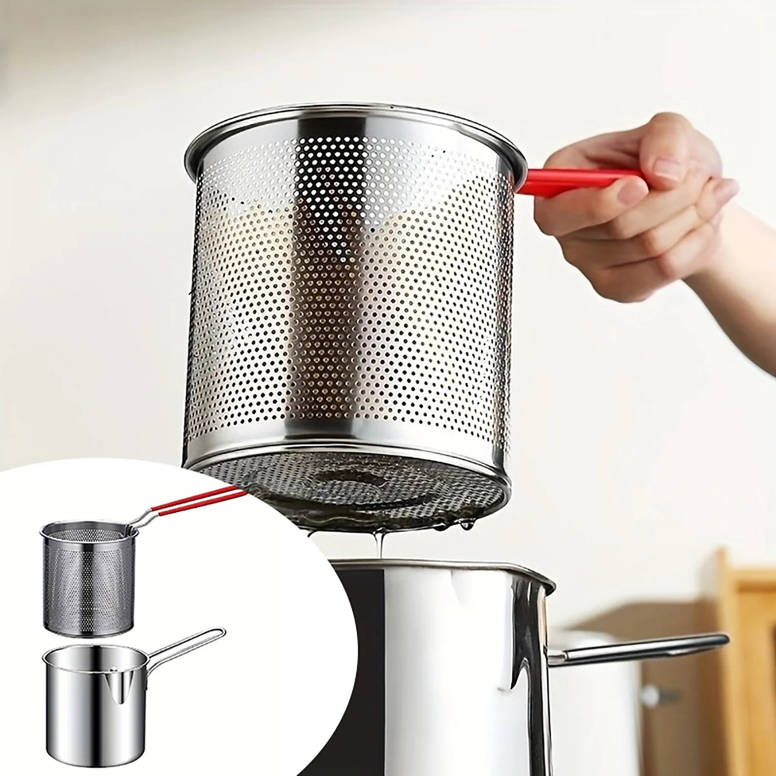 Stainless Steel Deep Fryer Pot with Oil Strainer